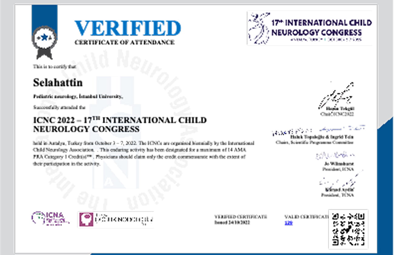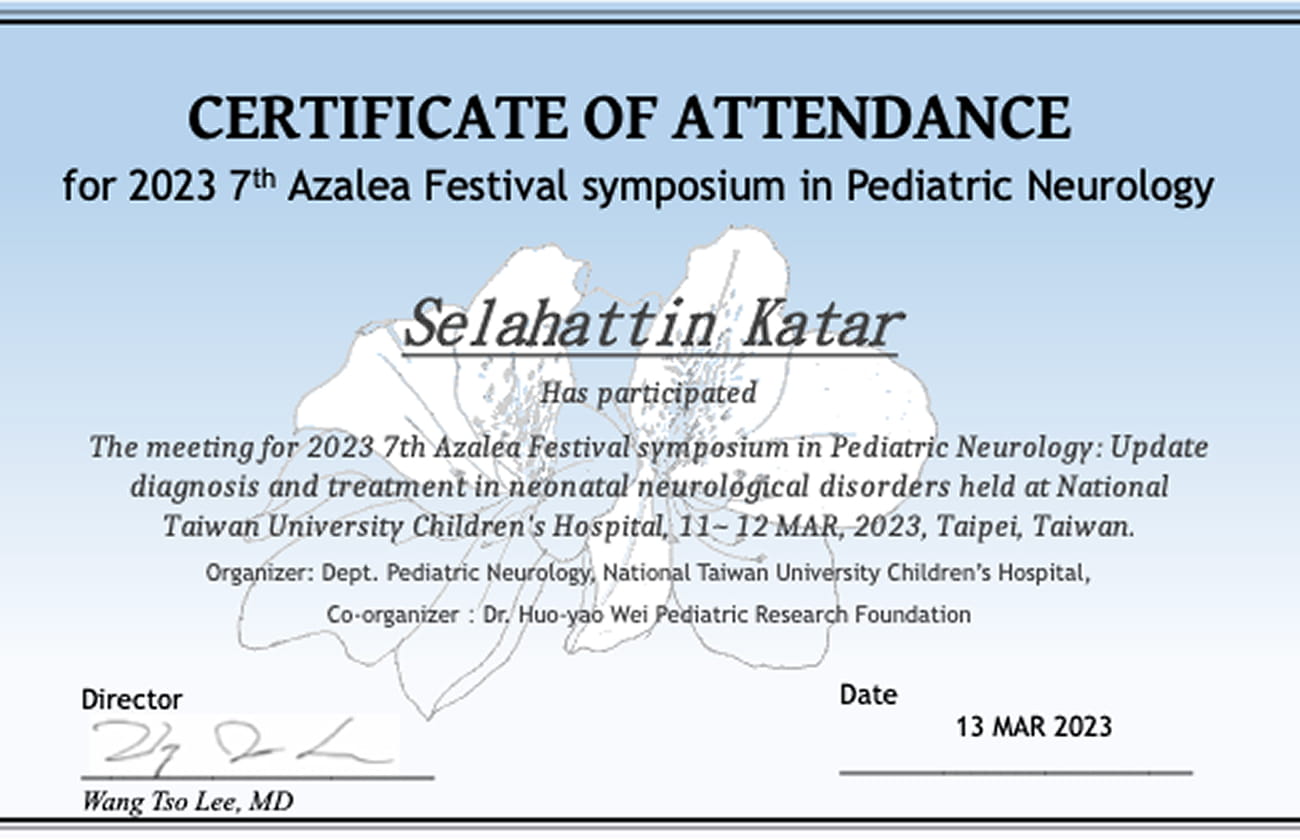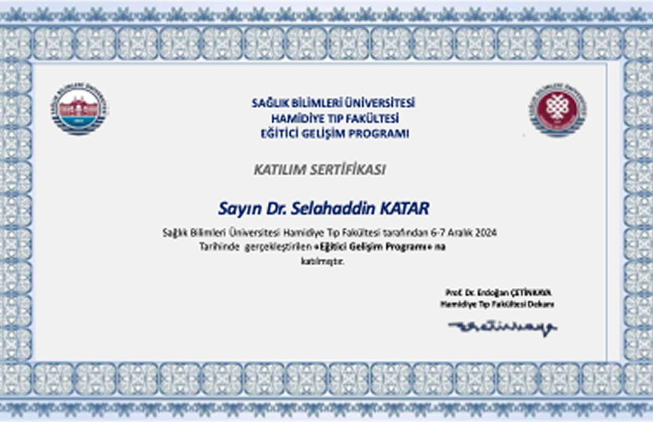 Dr. Selahattin Katar, çocuk sağlığı ve nörolojisi alanında uluslararası düzeyde düzenlenen eğitim ve bilimsel etkinliklere aktif olarak katılmakta; güncel, kanıta dayalı tıp uygulamalarını klinik pratiğine yansıtmaktadır.